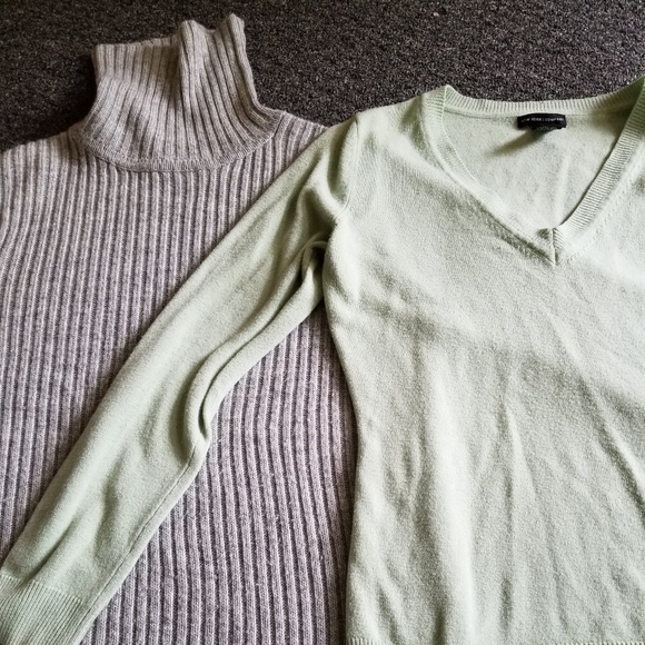 2 sweaters one grey turtleneck and 1 super soft green V neck