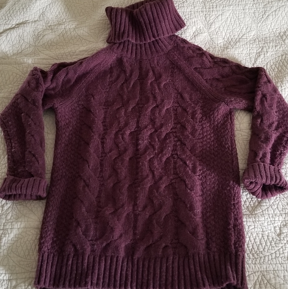 Turtle neck, size 12, Land's End acrylic/nylon/wool. Colour red/cranberry, and dark tan