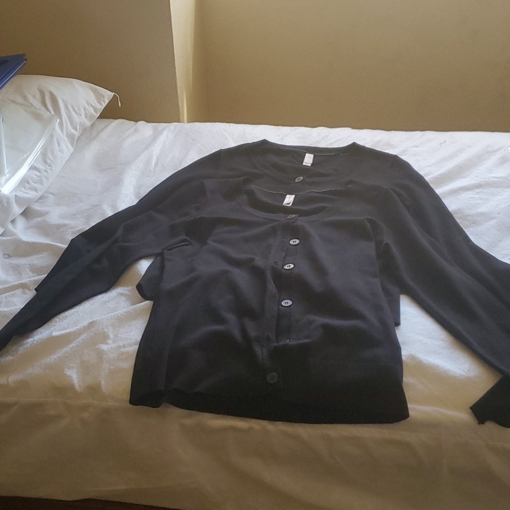 Black, long sleeve, button-down front