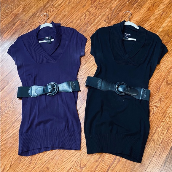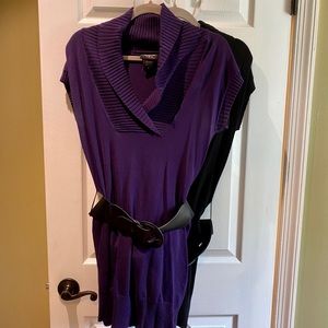 2 light-weight tunic length sweaters with belt.