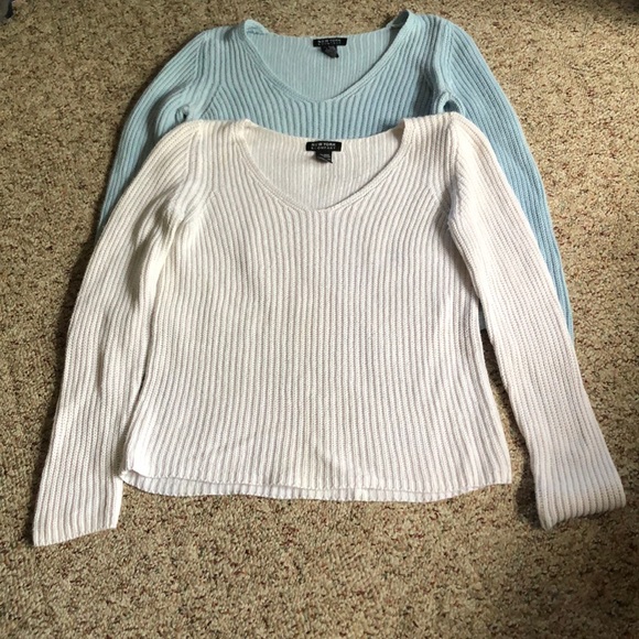 White & Baby Blue Knit V-Neck Sweaters