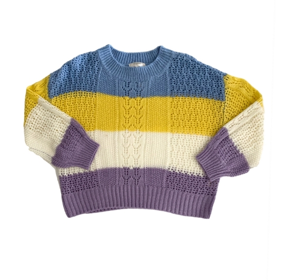 Juniors 'Striped Balloon Sleeves Sweater, Relaxed fit crew neck ,Ribbed collar, cuffs &Hem ,Acrylic, Machine washable. Runs small , Also available in ivory.