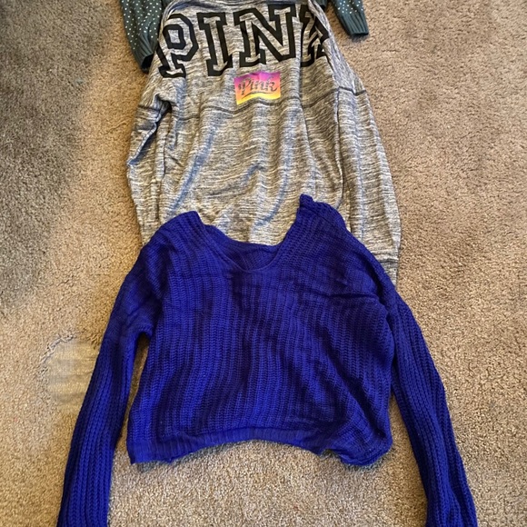 Sweaters! Separate is 15 / together is 25! Pink is XS / blue sweater is L