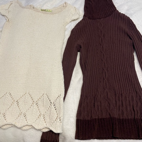 Brown turtle neck is size medium by WoW cloture. White knit dress/shirt is size Small from Old Navy. Pet and smoke free home. Open to offers.