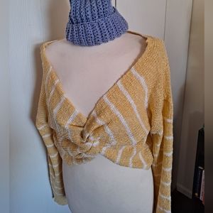 knitted and knotted yellow crop sweater.