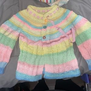 Hand crochet sweaters, multiple colors and sizes ranging from 12-4t