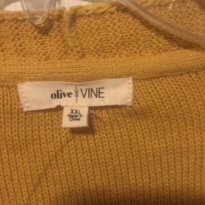 Olive & Vine woman’s sweater size XXL color golden mustard stretchy material NWOT fringe
