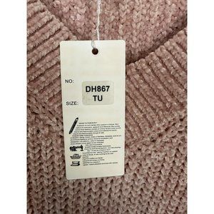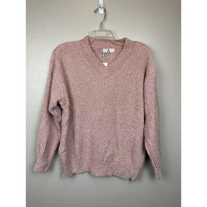 Sweaters for Women V Neck Long Sleeve Pullover Knit Top Pink Chunky Knit