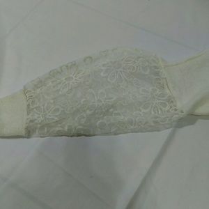 White shirt/sweater with lacey sleeves. Is great shape been worn once.