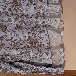 Soft teal flower pattern long sleeved, light weight sweater with lace accents on bottom.