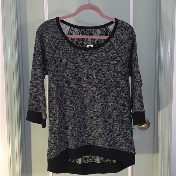 Brand new express sweater/top black and gray with full black lace back