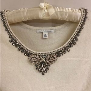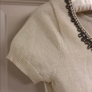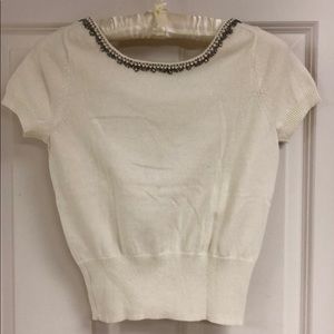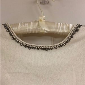Off white... short sleeve...fitted waist...beautiful rhinestones/pearls and beads!