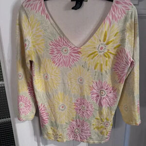 Sweaterworks Women’s Floral Beaded Silk Sweater Multi Color Sz Medium