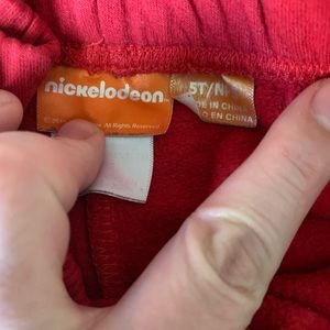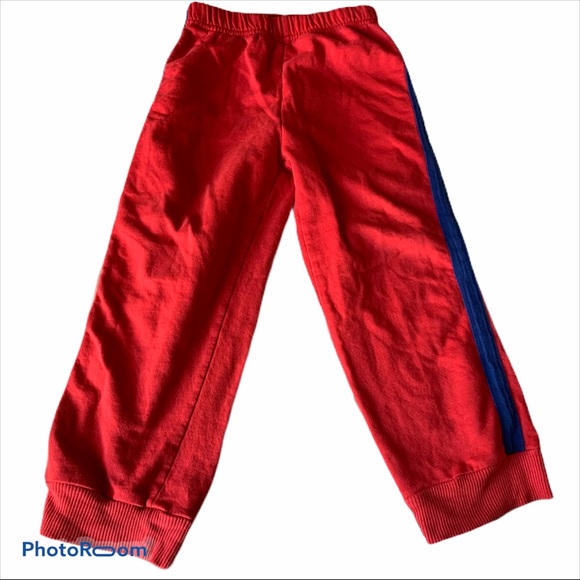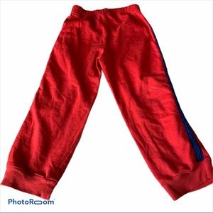 Boys 5T red sweatpants, have navy stripe on side, good used shape, some wear,