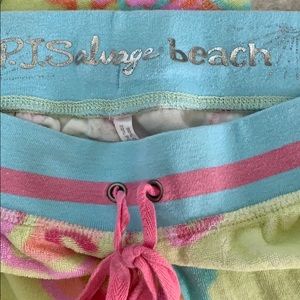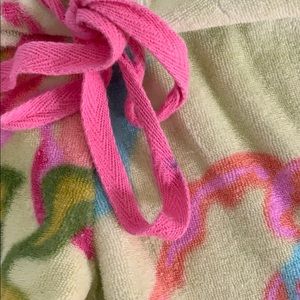 Floral print lounge/sweat pants with draw string tie. Has a blue spot on the drawstring tie.