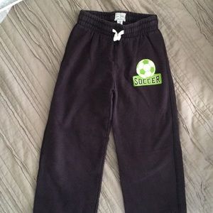Black sweatpants with soccer ball on leg.