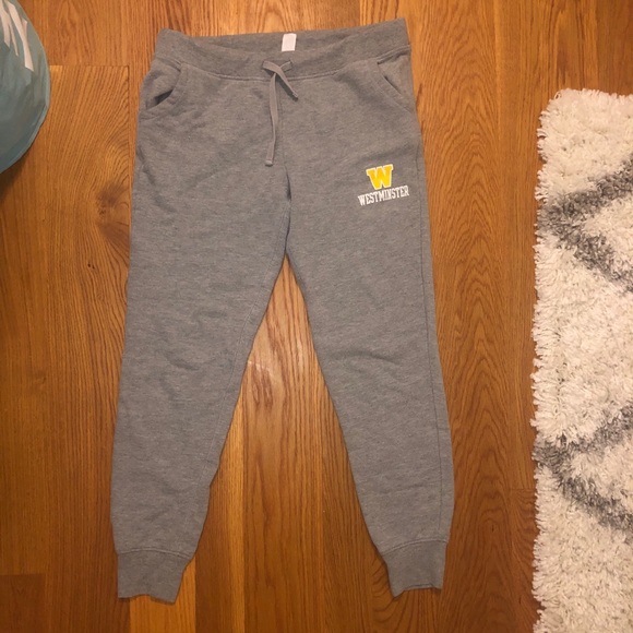 Grey Westminster sweatpants with pockets and a tie waist. Could fit small or medium