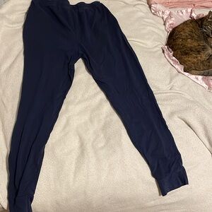 Comfy navy blue large sweatpants--Button + adjustable waistband