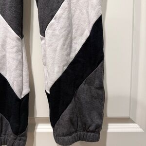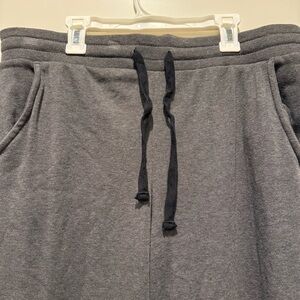 Comforthale material. Diagonal fabric designs. Tie string at waist to secure. Cinched ankle.