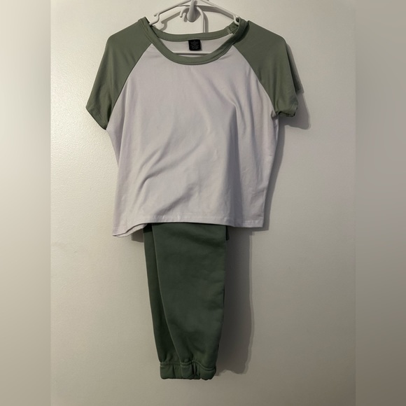 Brand new without tags sweatpants set. Beautiful sage green sweats with white and sage shirt. Smoke free home (fits like a women’s Xs/S)