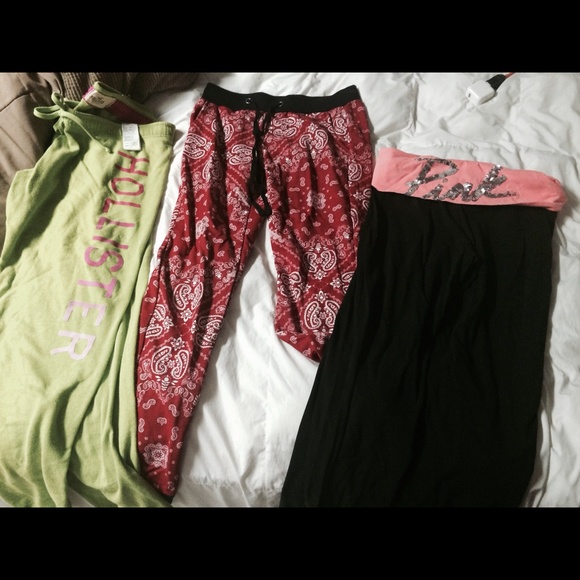Hollister sweatpants. $5. Designed joggers $5. Pink yoga pants $10..all size medium