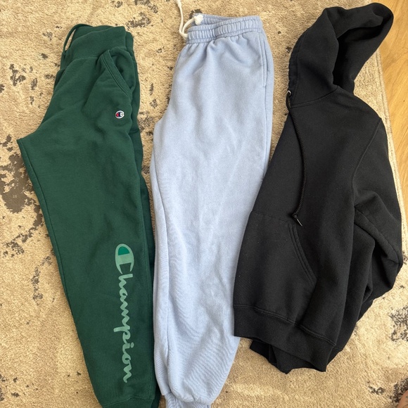 Champion and light blue joggers, plain black sweatshirt all in good shape smoke free home all for $10