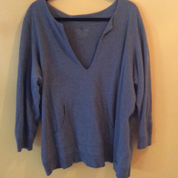 Grey sweatshirt, v-neck, extremely comfy, good condition, small bleach stain on right sleeve