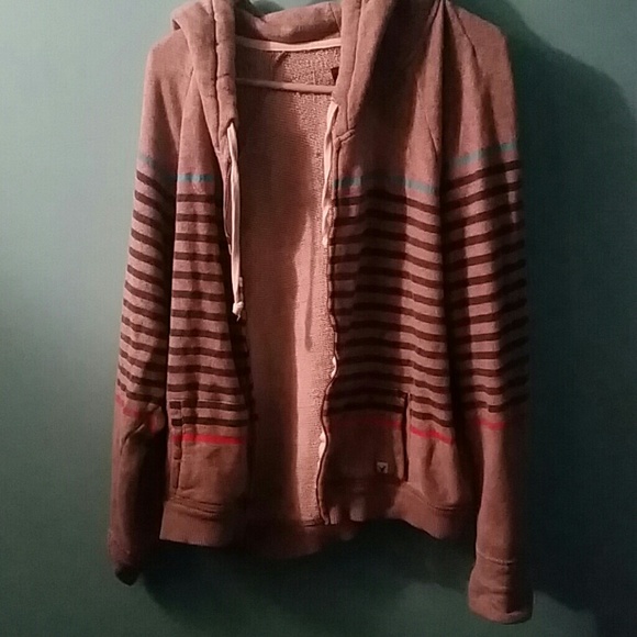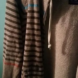 Zip up hoodie, striped, very loose fitting.