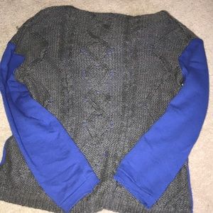 Solid front with cable knit back in grey