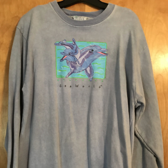 This is a cute sweatshirt from Sea World with dolphins pictured on the front. Worn once.