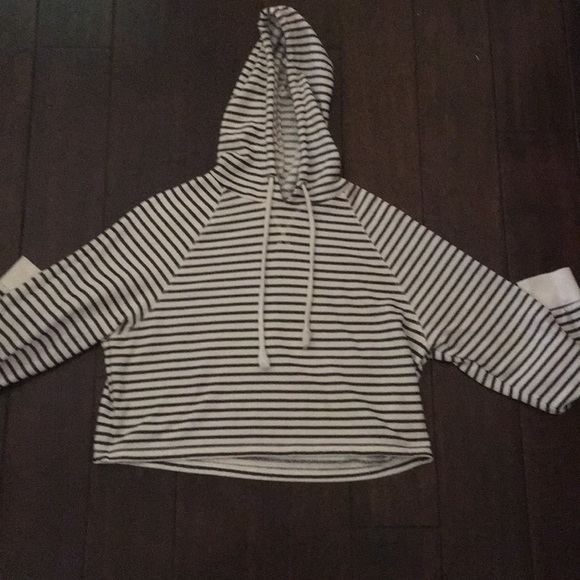 Cropped hoodie with black and white stripes