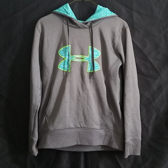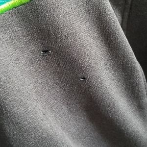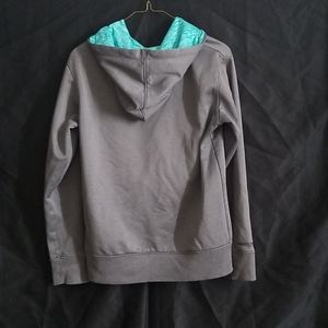 Sweatshirt w a hoodie and strings. large logo on from. used. in good shape. 2 small holes on front.