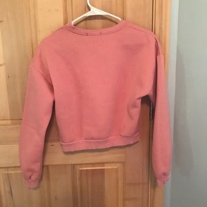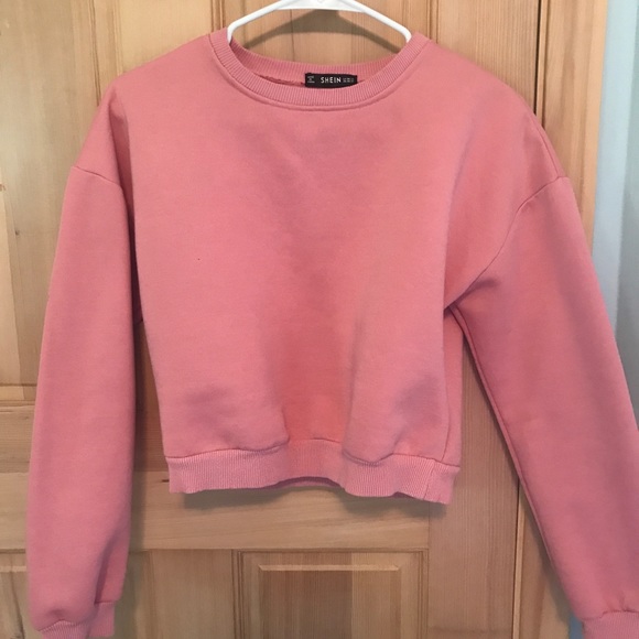 Light pink shein cropped crew neck sweatshirt. It says one size fits all but fits a xs-m