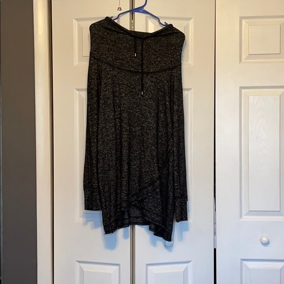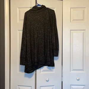 Cowl neck tunic/sweatshirt with asymmetrical stitching on bottom