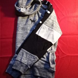 From the VS Pink line we have a black & white checker pattern on both sleeves. GREY Sweatshirt. Cowl neck has pockets on both sides.