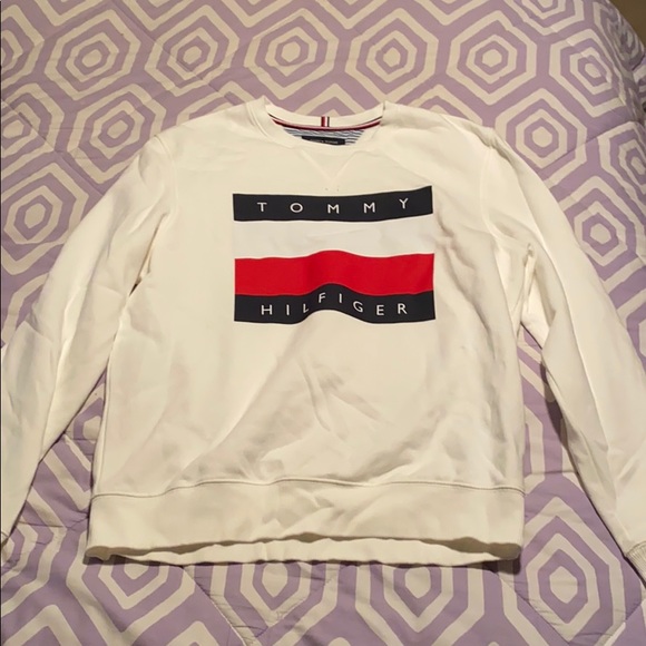 Tommy Hilfiger white sweatshirt with logo on front. Size large, worn once.