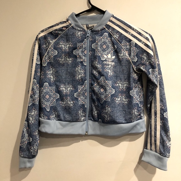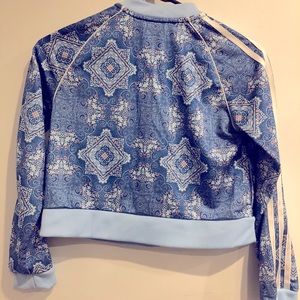 Adidas paisley geometric pattern crop jacket with zipper.