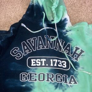 Savanna GA sweatshirt with teal and blue tye dye design