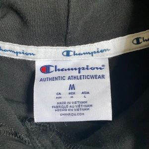 Black champion hoodie size medium used. White letters