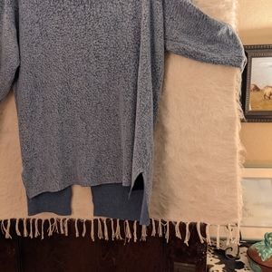 Fun sweatshirt, styled inside out so the jersey knit is on the inside and the fleece is outside. In shades of blue, the sweatshirt has a cowl neck, zipper on back, high-low hemline and slits in the sides. Comfort and style merge together in this by Soft Surroundings.