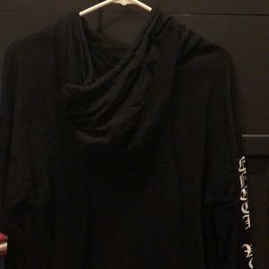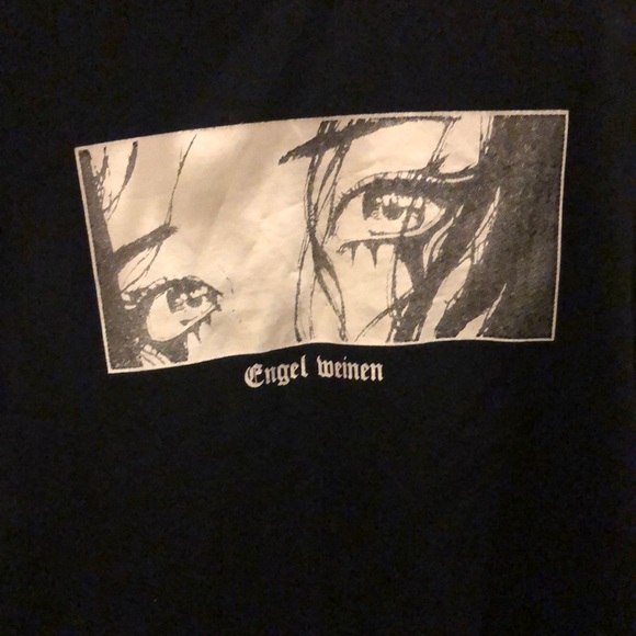 Engel Weinen black with white lettering on both sleeves lightweight sweatshirt. Detailing not faded in good condition.