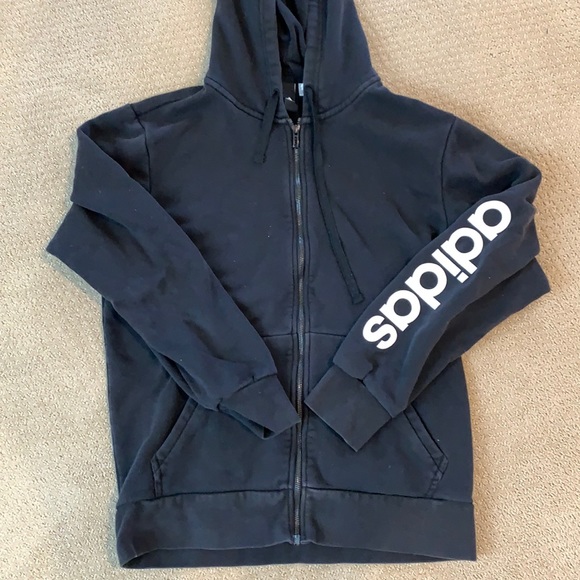 Adidas zip up hoodie sweatshirt. Pre-loved slightly faded but other than that no holes. No trades or modeling please!
