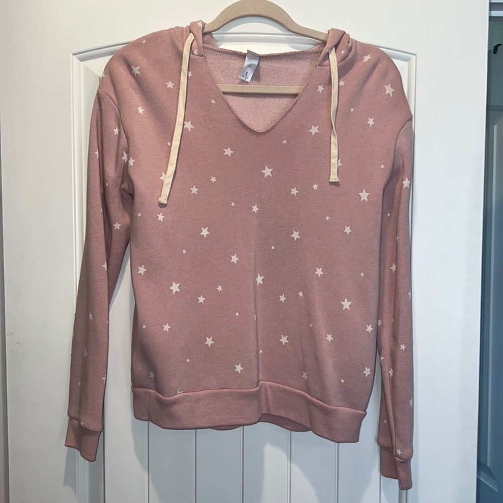 Super soft star printed top. Not too thick but very soft! Only worn a handful of times. Pet & smoke free home!
