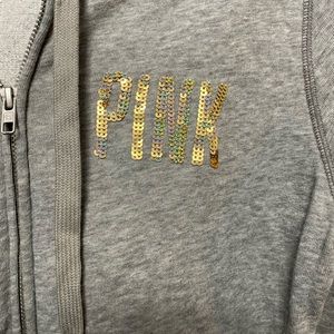 Victoria’s Secret PINK blingy rose gold and gold zippered hoodie with small stain bottom as shown