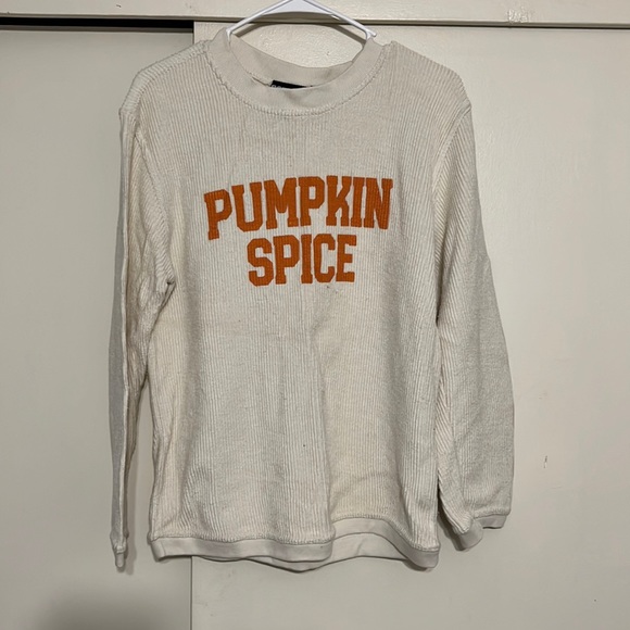Xs sweatshirt, fits extra small / small, material is almost like thin corduroy, cream color