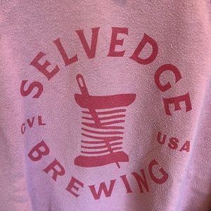 Vintage style sweatshirt from Charlottesville, Va brewery. It’s used with some pilling. Salmon/pink color with red lettering.