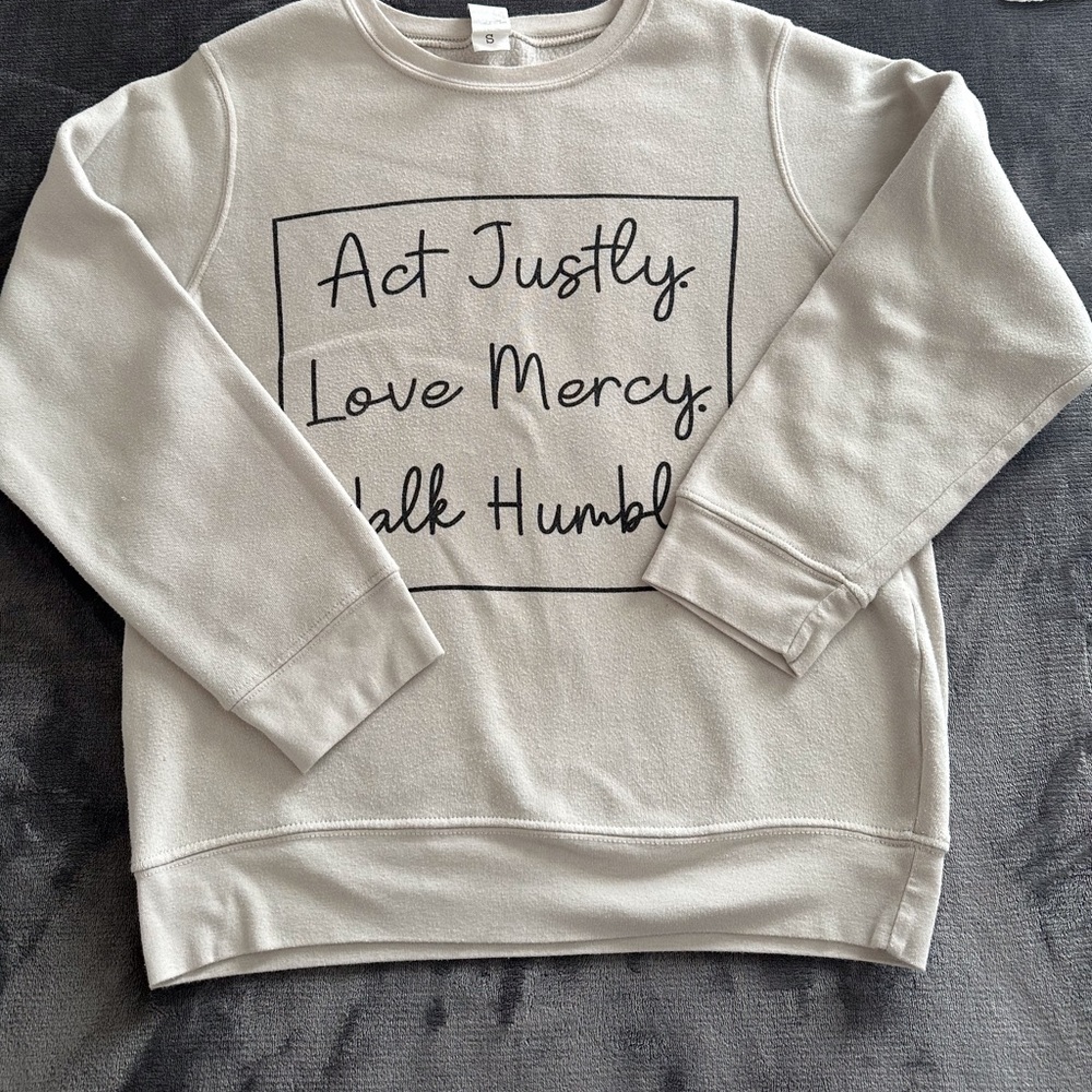 Act Justly. Love Mercy. Walk Humbly. Sweatshirt size S. Pre loved.