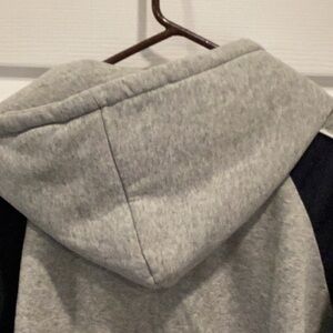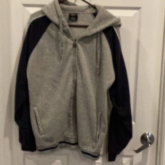 Blue & grey sweatshirt Zip up Hood with tie Two pockets Gently used Size large