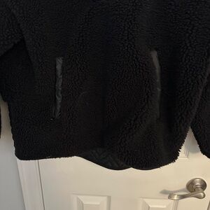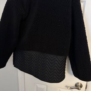Very nice stylish fleece sweatshirt with part kind leather in the back, wore few times because I found is too big for me.