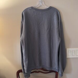 Grey “watercolor” sweatshirt. The WaterColor® Timber Crew is the perfect pullover for a day off the beach. Lounge around in this 100% cotton with interlocking corded fabric. Cuffed at sleeves 28” L, 24” armpit to armpit.